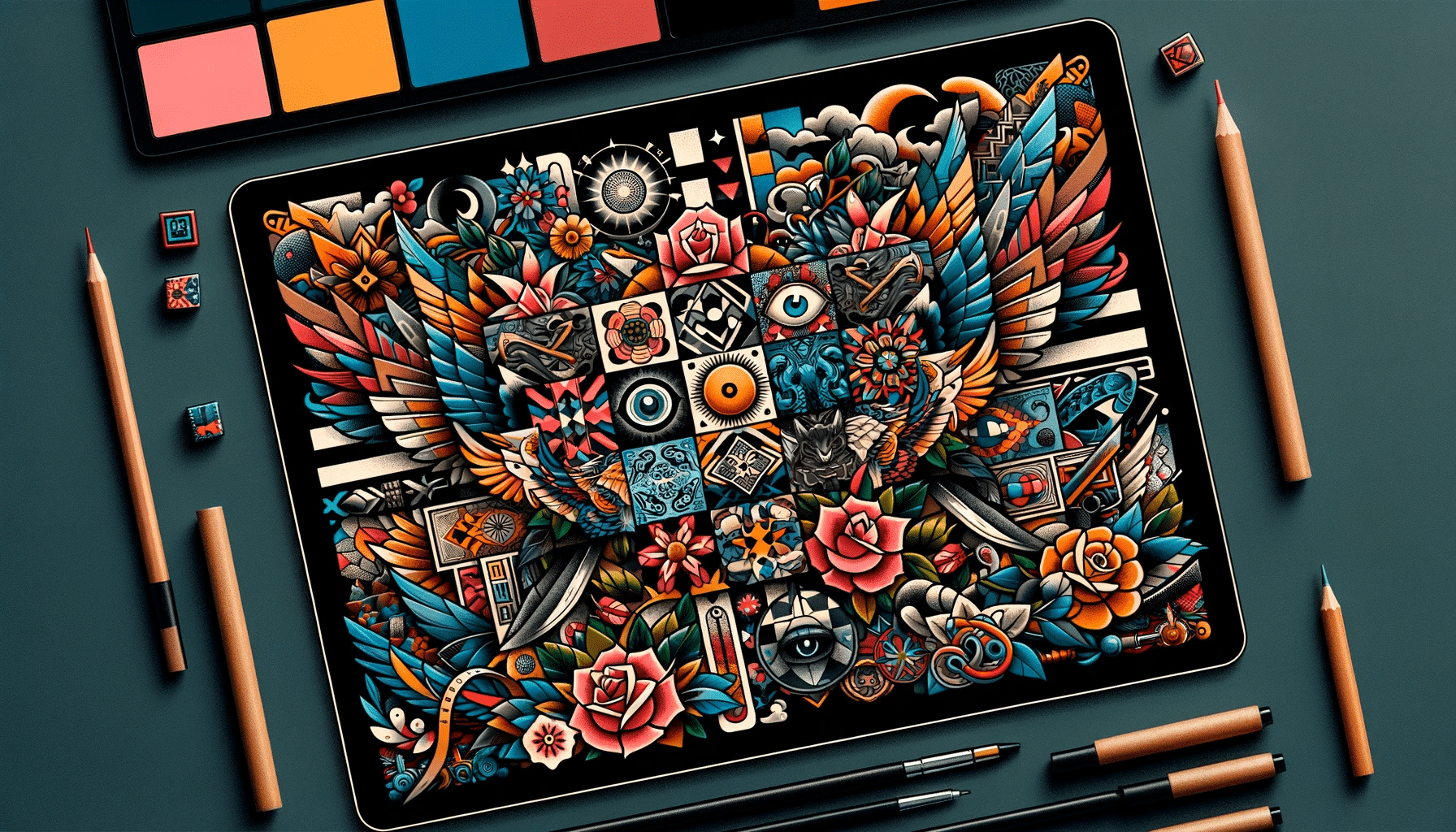 Patchwork tattoos are an intriguing convergence of diverse designs,